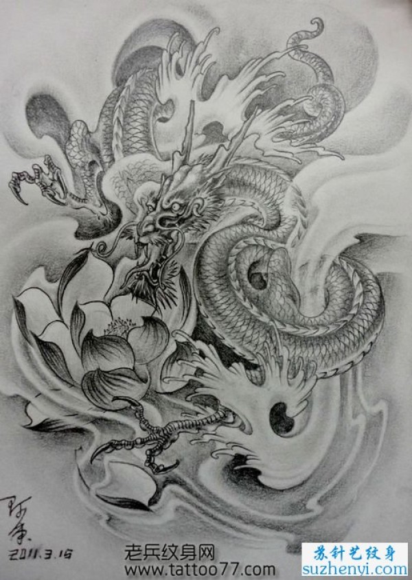 龙莲花纹身_龙纹身图案大全_纹身图吧