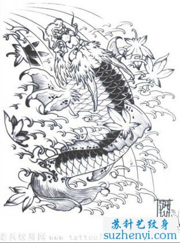 鳌鱼跃龙门纹身图案_龙纹身图案大全_纹身图吧
