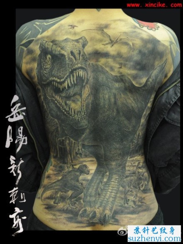 超酷的满背霸王龙纹身_龙纹身图案大全_纹身图吧