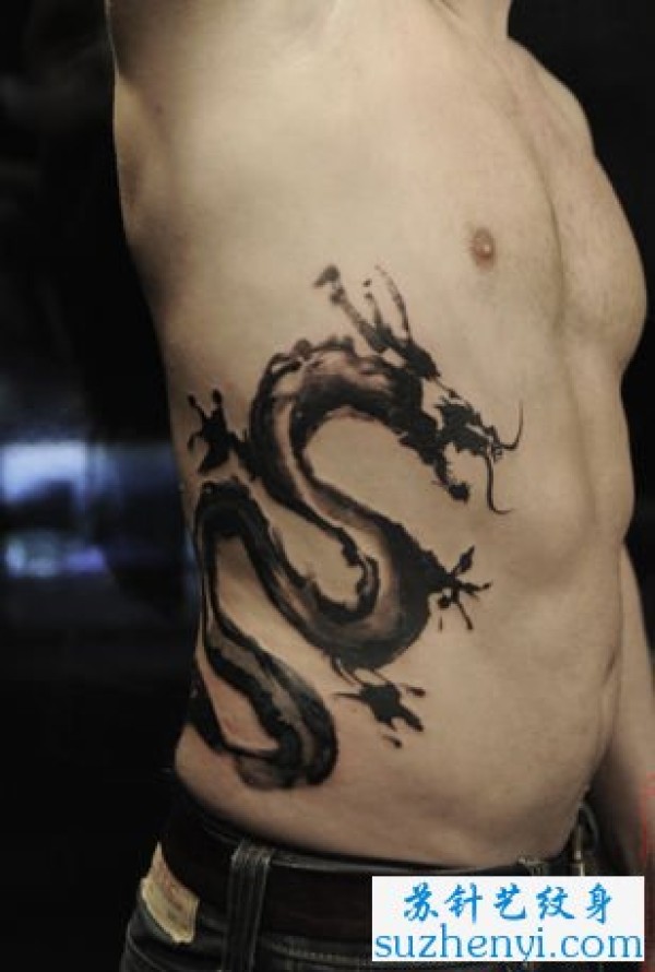 腰部水墨画龙纹身_龙纹身图案大全_纹身图吧