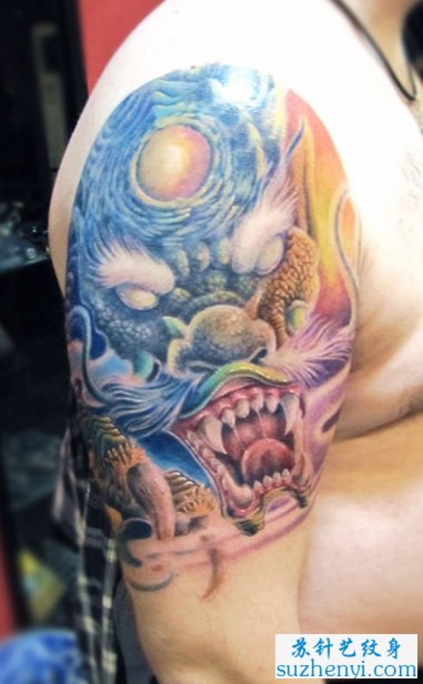手臂艳丽的彩色龙纹身_龙纹身图案大全_纹身图吧