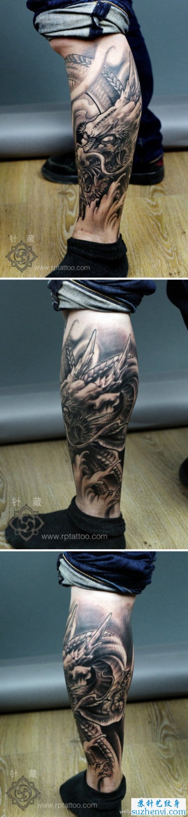 男人腿部帅气的盘腿龙纹身_龙纹身图案大全_纹身图吧