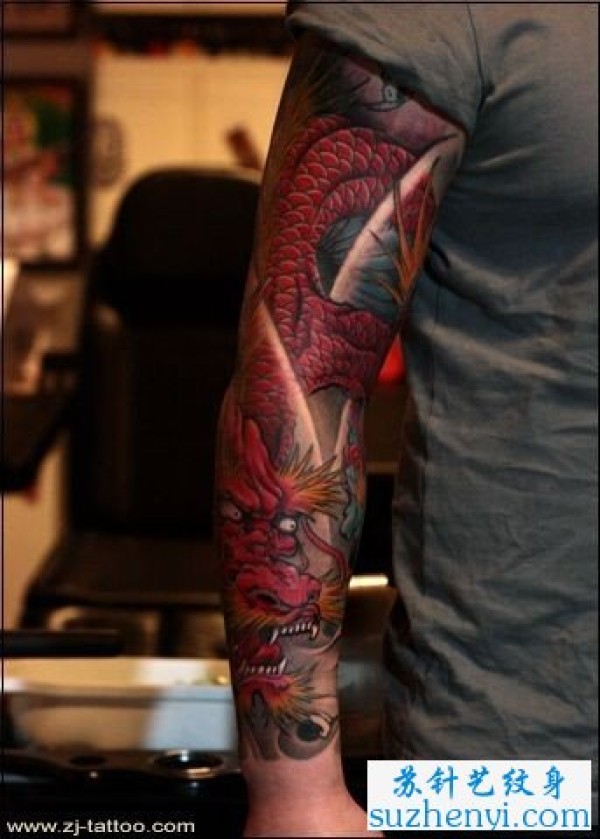 经典手臂彩色龙纹身_龙纹身图案大全_纹身图吧