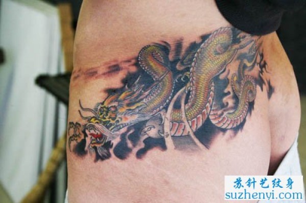 男人腰部经典的龙纹身_龙纹身图案大全_纹身图吧