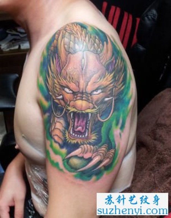 手臂好看的彩色龙纹身_龙纹身图案大全_纹身图吧