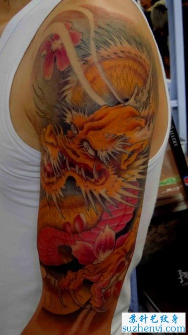 手臂漂亮的彩色龙纹身_龙纹身图案大全_纹身图吧