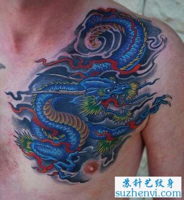 男人前胸帅气时尚的龙纹身_龙纹身图案大全_纹身图吧