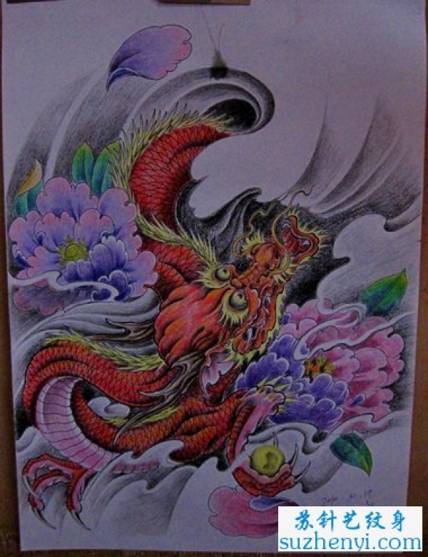 彩色龙牡丹纹身图案纹身_龙纹身图案大全_纹身图吧