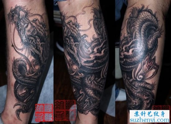 腿部龙纹身_龙纹身图案大全_纹身图吧