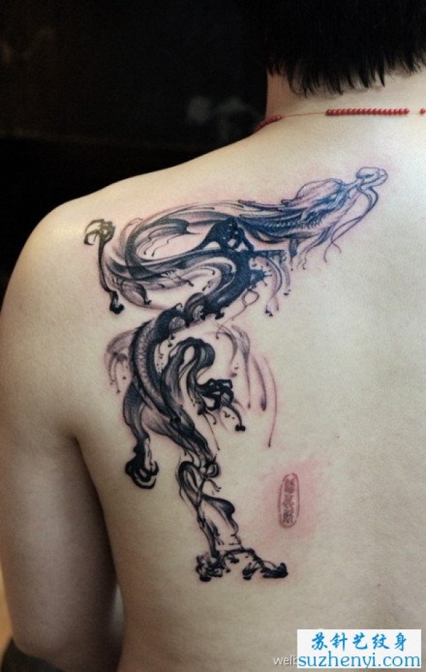肩部的水墨画龙纹身_龙纹身图案大全_纹身图吧