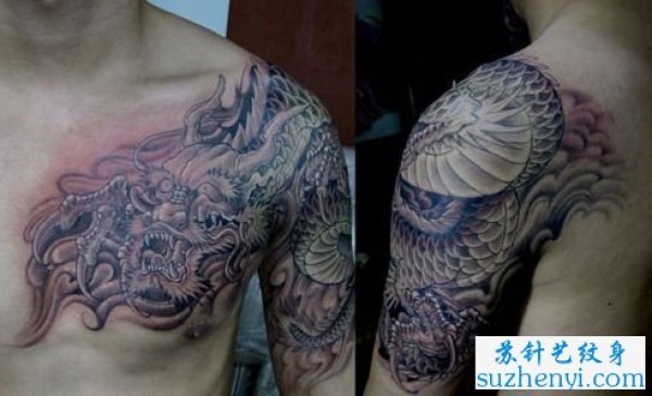 披肩龙纹身_龙纹身图案大全_纹身图吧