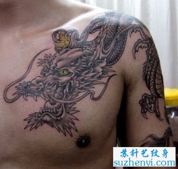 黑色过肩龙龙头纹身_龙纹身图案大全_纹身图吧