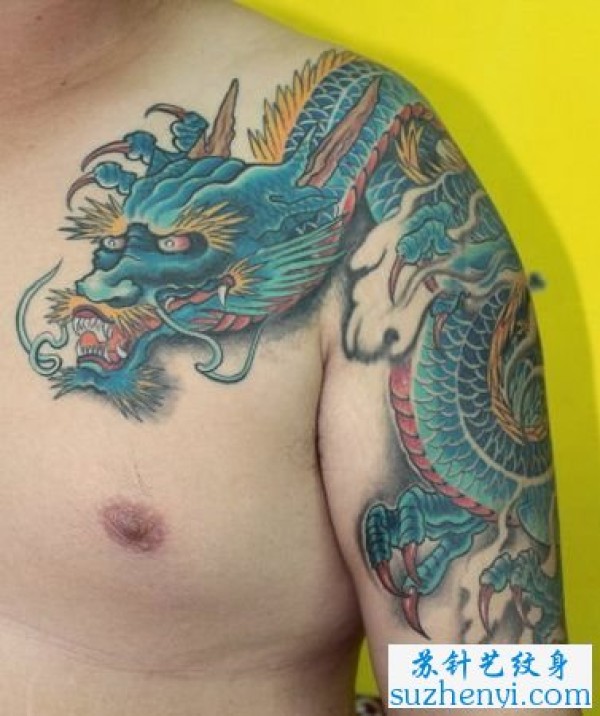 帅气彩色披肩龙纹身_龙纹身图案大全_纹身图吧