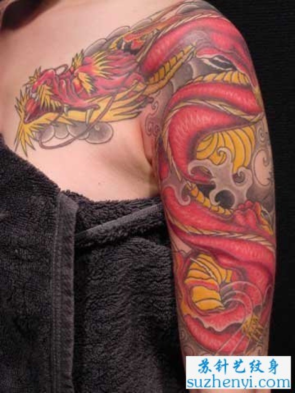 红色过肩龙纹身图案纹身_龙纹身图案大全_纹身图吧