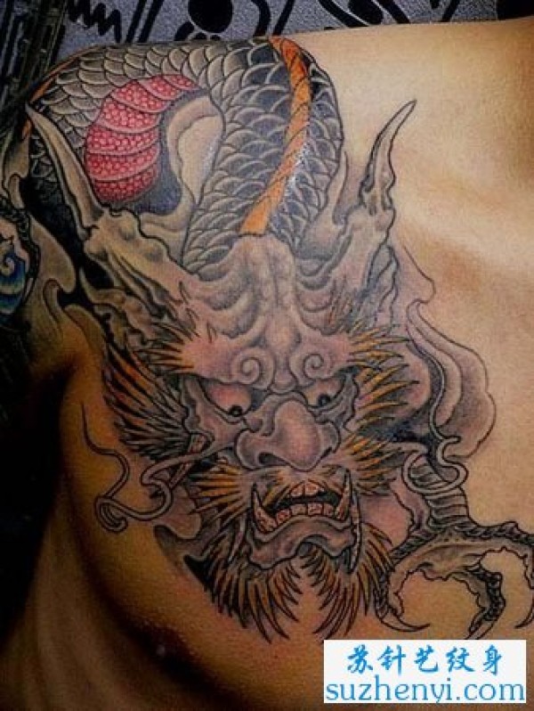 胸部披肩龙龙头纹身_龙纹身图案大全_纹身图吧