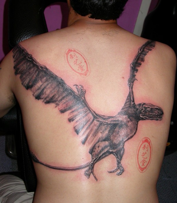 背部翼龙纹身_龙纹身图案大全_纹身图吧