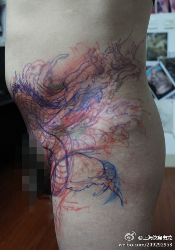 腰部龙纹身手绘中_龙纹身图案大全_纹身图吧