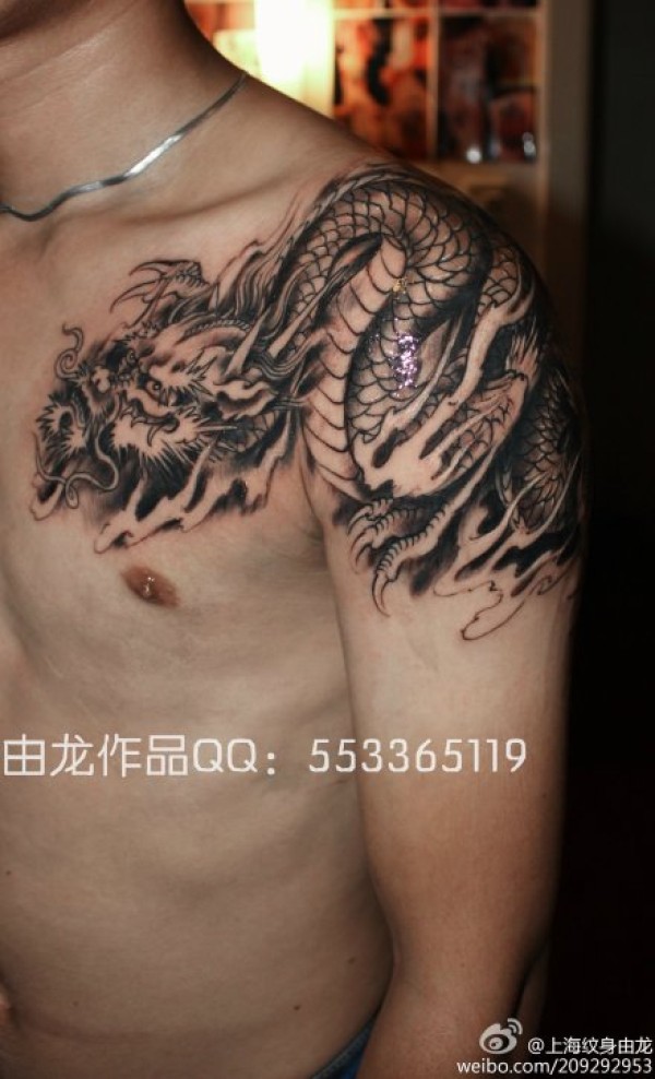 过肩龙纹身_龙纹身图案大全_纹身图吧