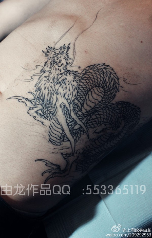男生侧腰龙纹身线条完成_龙纹身图案大全_纹身图吧