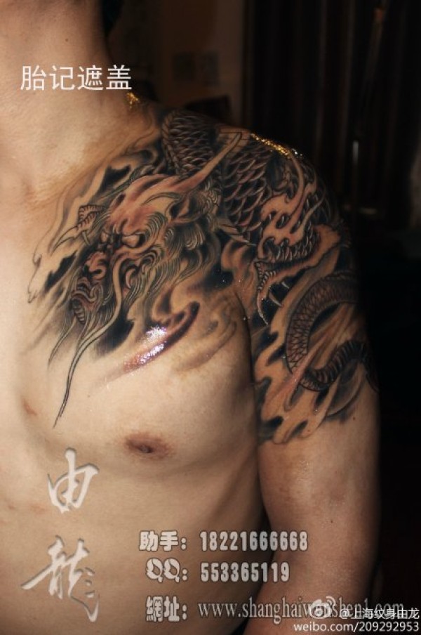 过肩龙纹身_龙纹身图案大全_纹身图吧