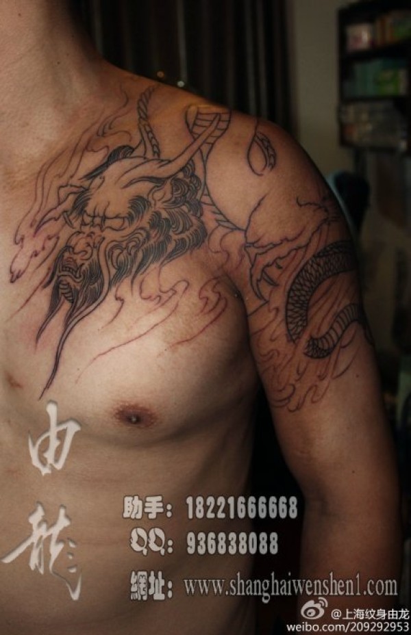男生过肩龙线条完成_龙纹身图案大全_纹身图吧