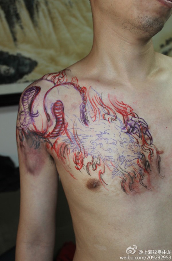 过肩龙纹身进行中_龙纹身图案大全_纹身图吧