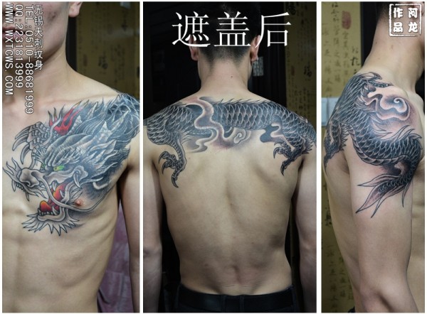 披肩龙纹身_龙纹身图案大全_纹身图吧