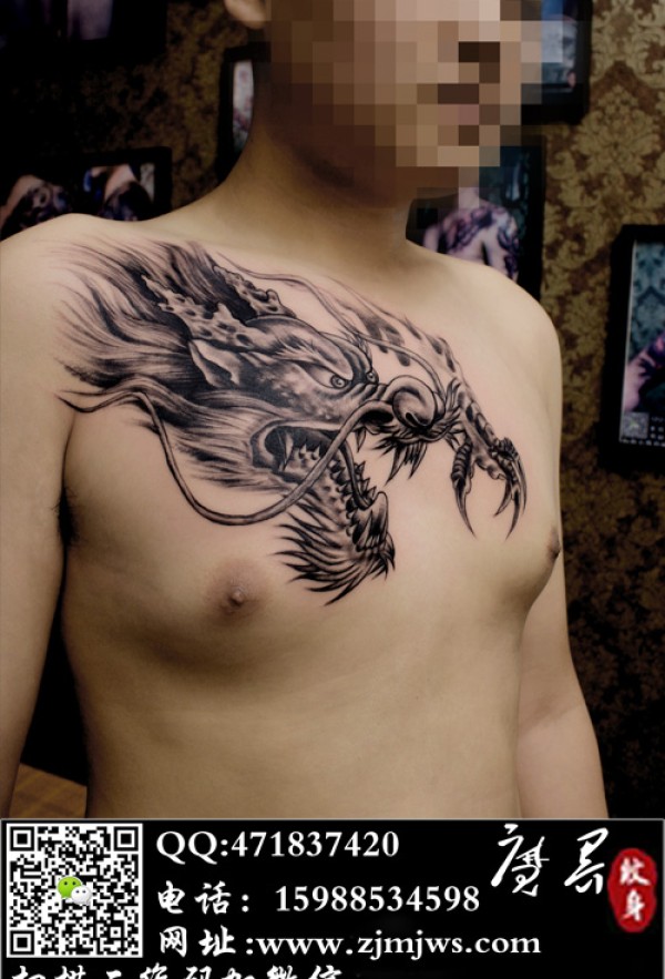 胸口超霸气龙头纹身_龙纹身图案大全_纹身图吧