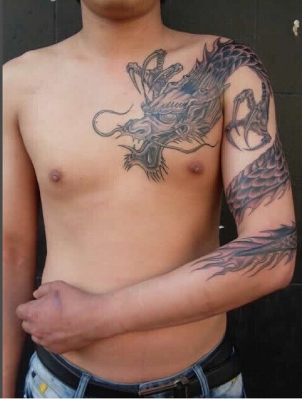过肩龙纹身_龙纹身图案大全_纹身图吧