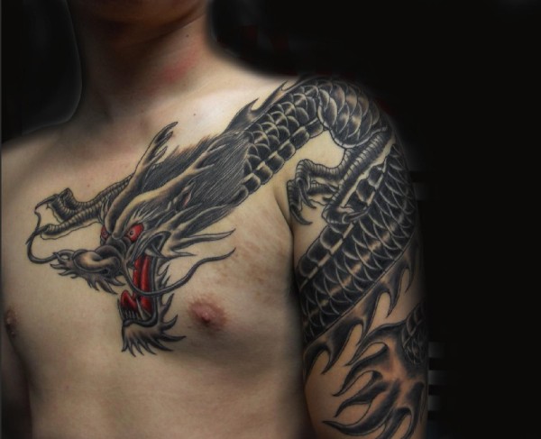 过肩龙纹身_龙纹身图案大全_纹身图吧