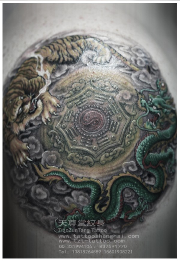 八卦龙虎图_龙纹身图案大全_纹身图吧
