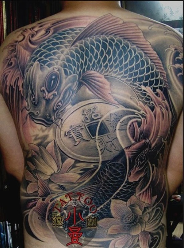 满背招财鲤鱼liyu图案_小曼xiaoman刺青作品_鲤鱼纹身图案大全_纹身图吧