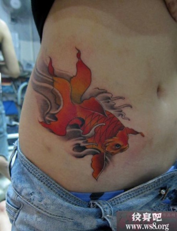 腰部上的传统鲤鱼chuantongliyu刺青图案_鲤鱼纹身图案大全_纹身图吧