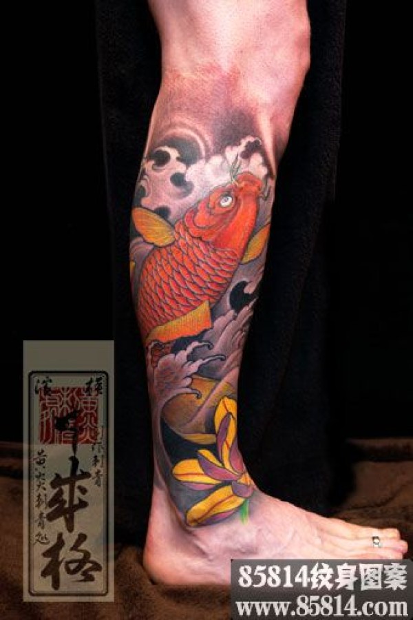 腿部的鲤鱼纹身日本黄炎纹身作品_鲤鱼纹身图案大全_纹身图吧