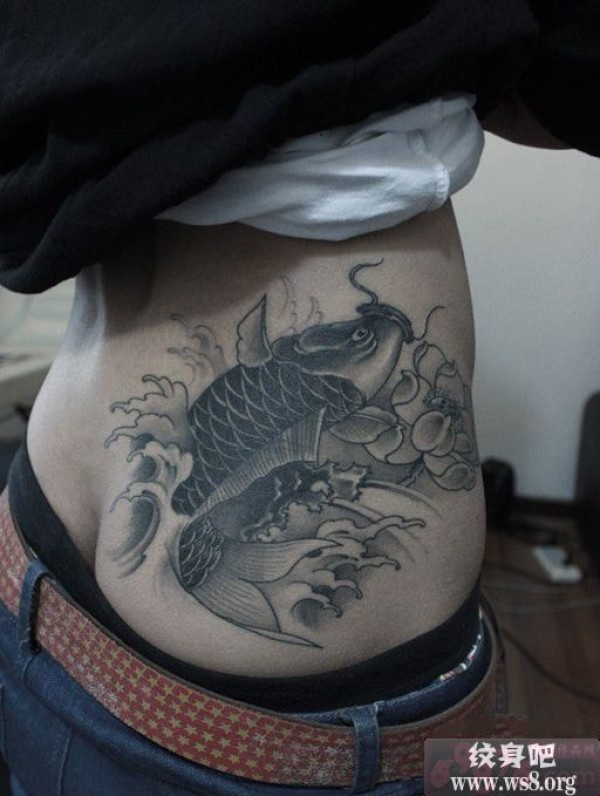 传统鲤鱼侧腰纹身图案_鲤鱼纹身图案大全_纹身图吧