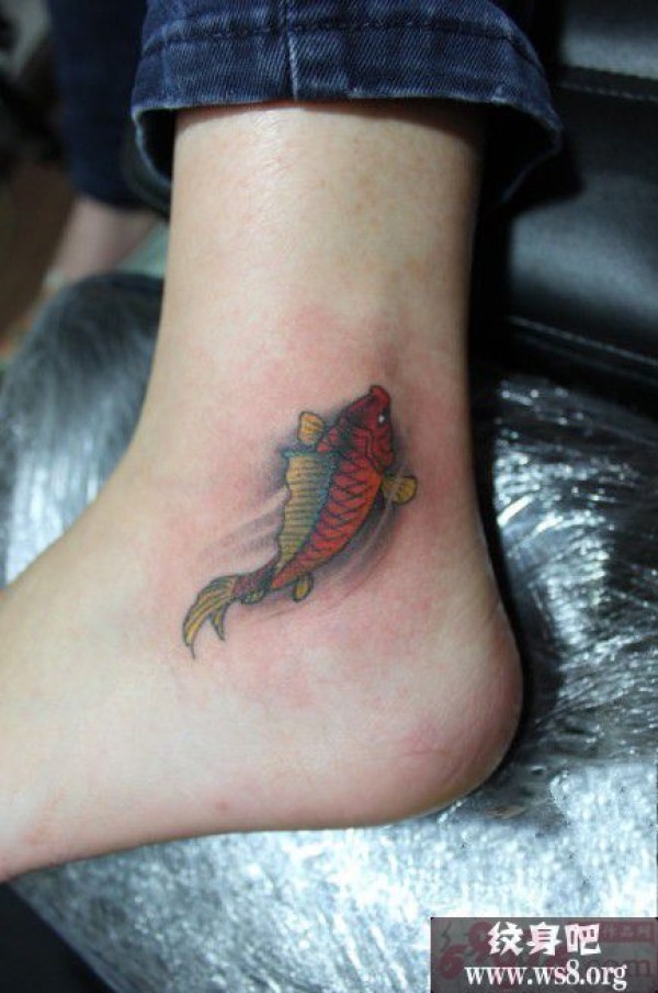 遨游的小鲤鱼脚踝纹身图案_鲤鱼纹身图案大全_纹身图吧