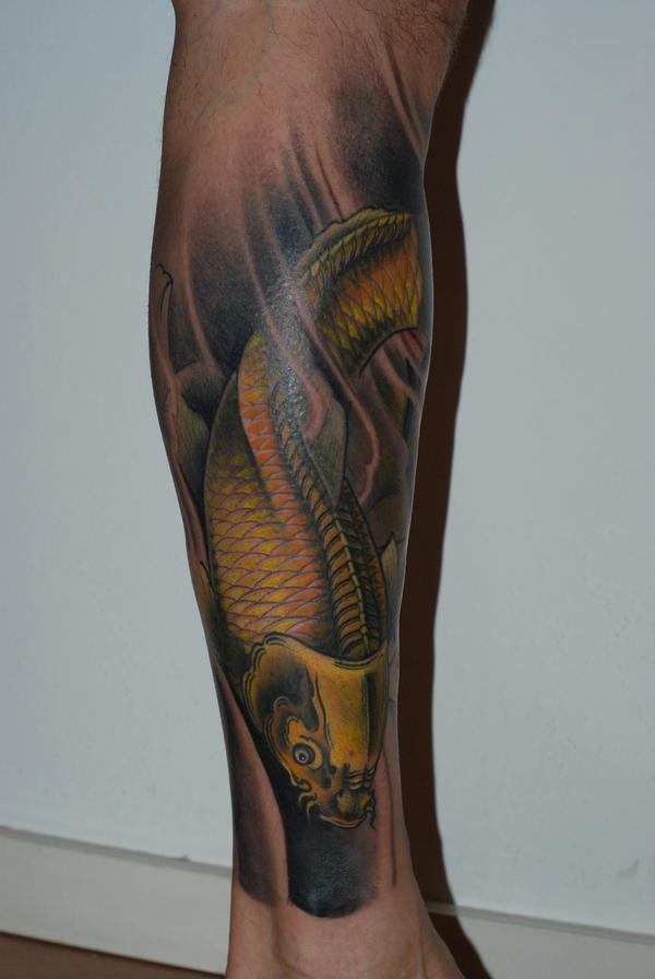 腿部鲤鱼刺青图片_鲤鱼纹身图案大全_纹身图吧