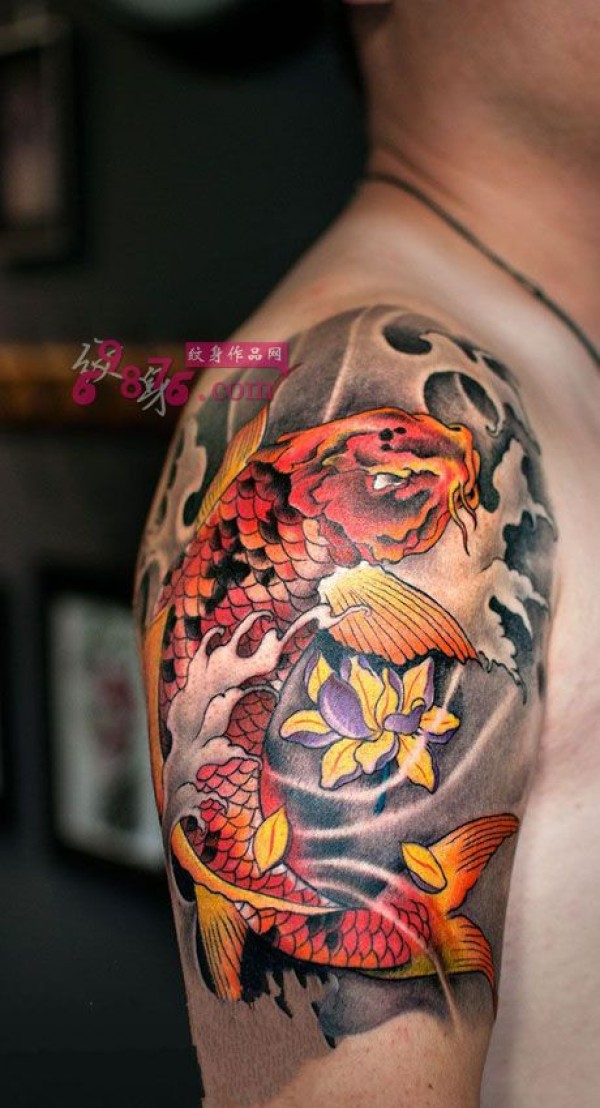 传统彩色鲤鱼纹身_鲤鱼纹身图案大全_纹身图吧