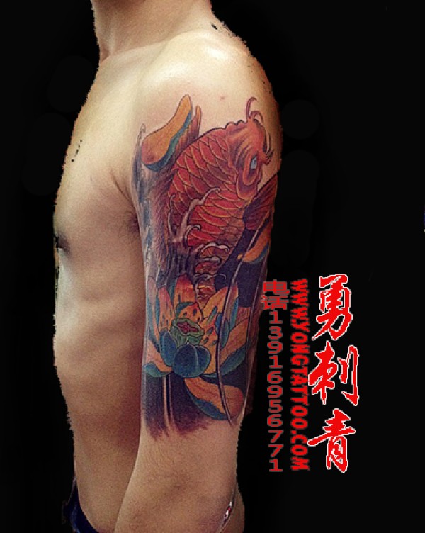 荷花鲤鱼纹身_鲤鱼纹身图案大全_纹身图吧