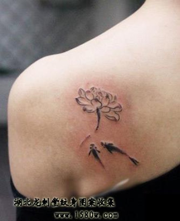 水墨画纹身荷花鲤鱼纹身_鲤鱼纹身图案大全_纹身图吧