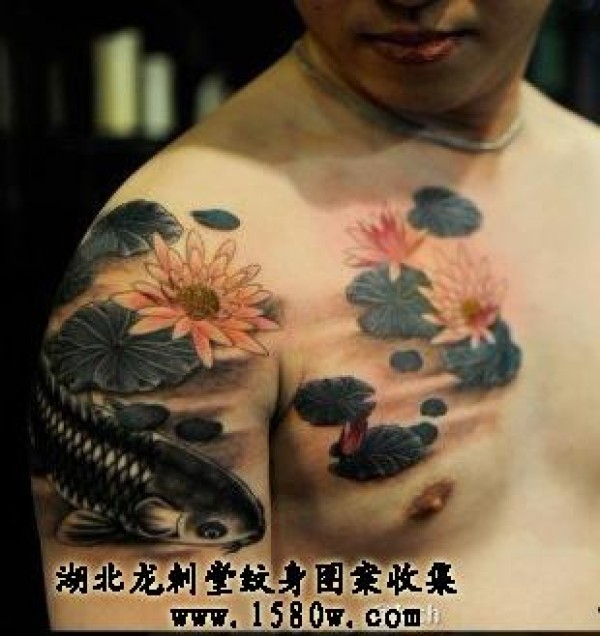 鲤鱼荷花半胛纹身_鲤鱼纹身图案大全_纹身图吧
