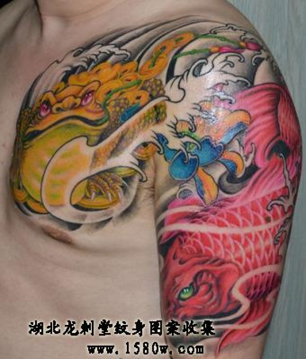 鲤鱼金蝉半胛纹身_鲤鱼纹身图案大全_纹身图吧