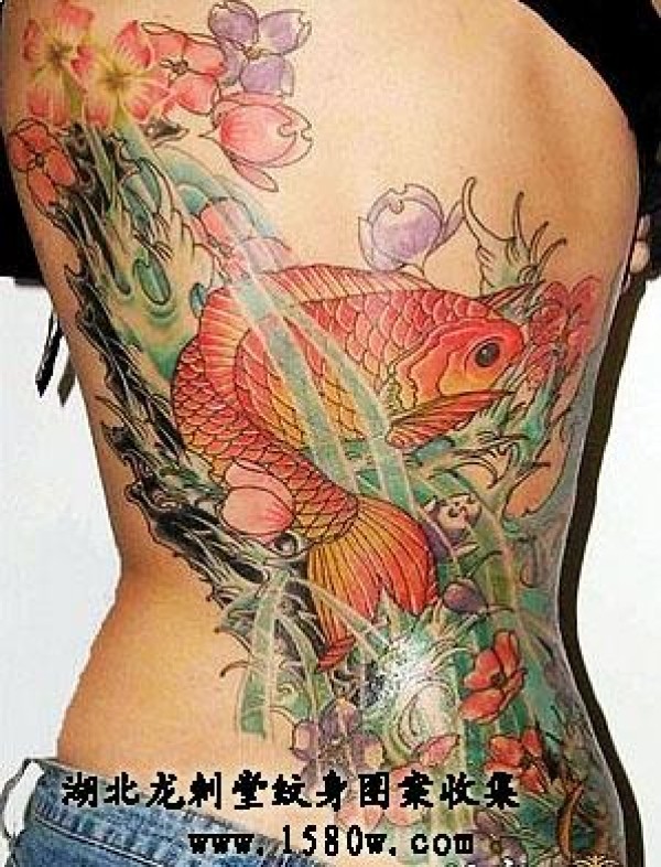 满背鲤鱼莲花纹身图案_鲤鱼纹身图案大全_纹身图吧