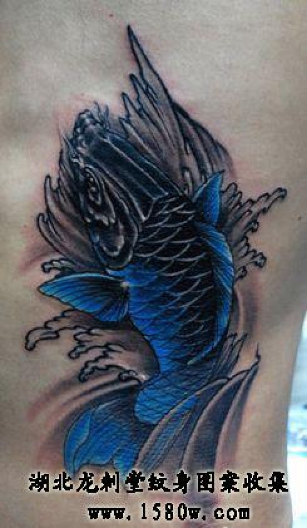 蓝色鲤鱼纹身_鲤鱼纹身图案大全_纹身图吧