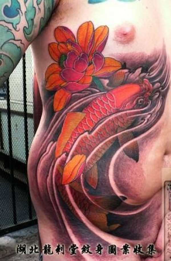 侧腰鲤鱼莲花纹身_鲤鱼纹身图案大全_纹身图吧