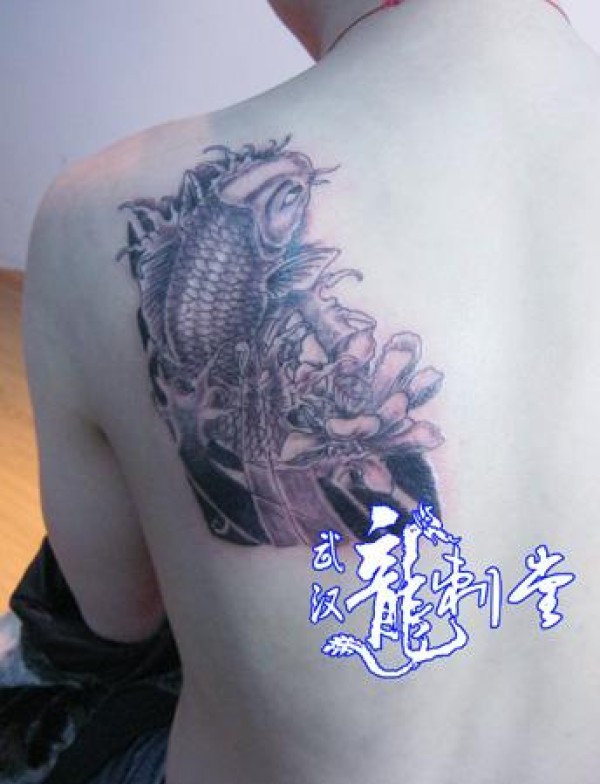 肩胛荷花鲤鱼纹身 武汉最好的纹身店_鲤鱼纹身图案大全_纹身图吧
