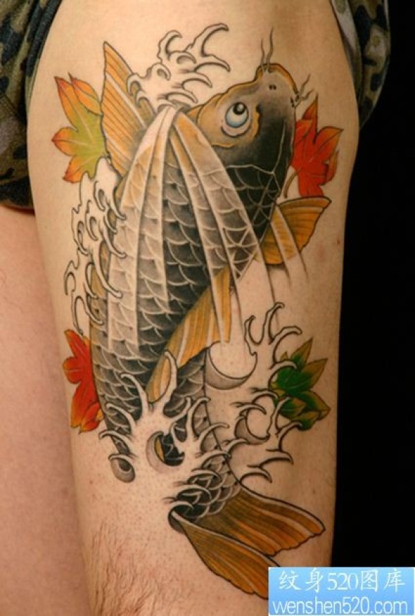 大腿上的鲤鱼纹身图案_鲤鱼纹身图案大全_纹身图吧