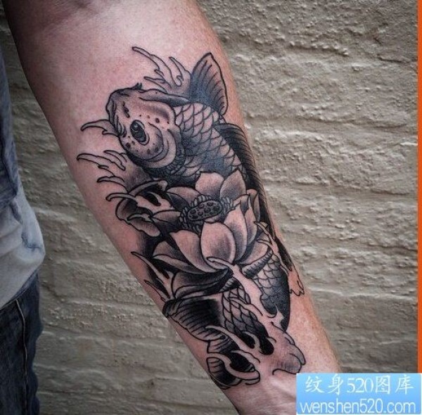 一款手臂莲花鲤鱼纹身图案_鲤鱼纹身图案大全_纹身图吧