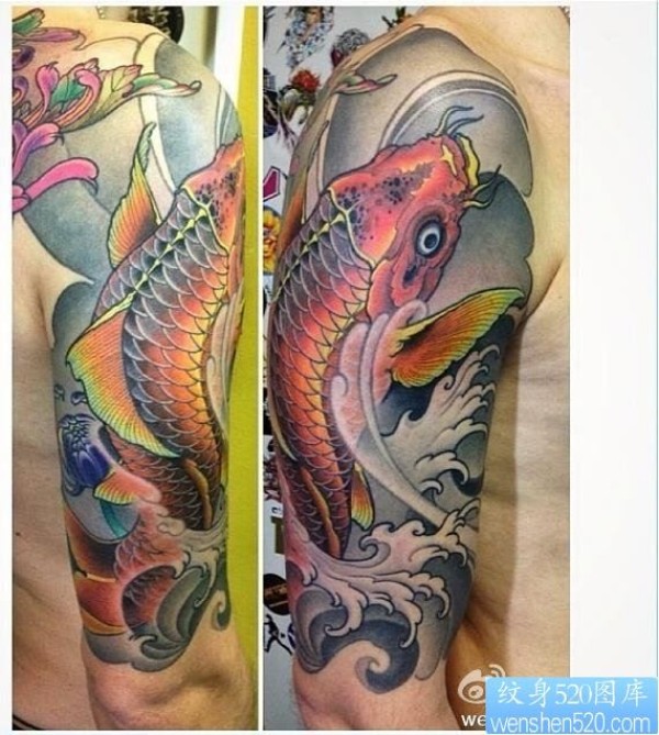 传统彩色鲤鱼纹身_鲤鱼纹身图案大全_纹身图吧