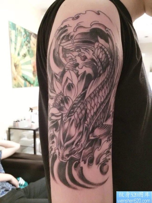 一幅欧美莲花鲤鱼文身图片由纹身520图库推荐_鲤鱼纹身图案大全_纹身图吧